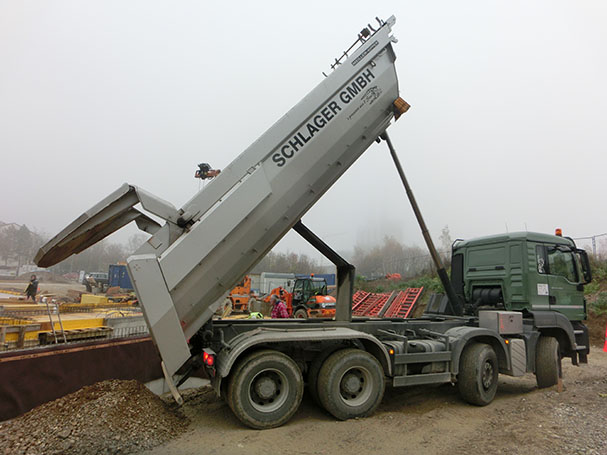 Erd- oder Abbruchmaterial muss transportiert werden. Hier hilft uns unser Lkw 4-Achser. Im Bild: Eine Erdanlieferung bei Forstenried.