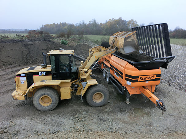 Die eigene Erdaufbereitungsanlage wird via Radlader befüllt.